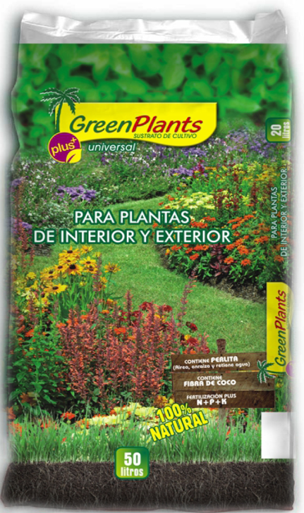 Mezcla de Compost vegetal, fibra de coco, corteza de pino, perlita y fertilización plus (N+P+K). Con elevada porosidad y adecuadas aireación, capacidad de retención de agua y granulometría. Resistente a cambios fisicoquímicos y ambientales.